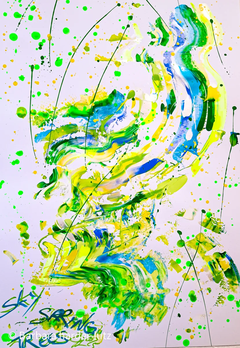 Acylic inks and leaves on fin paper 300g - unframed - international shipping - copyright barbaraharderlutz