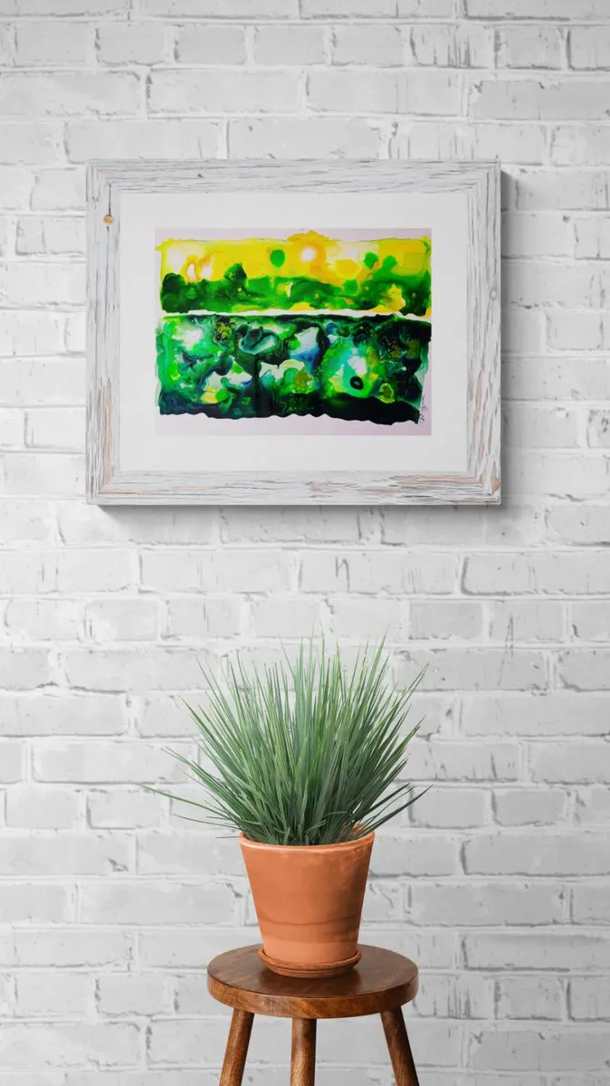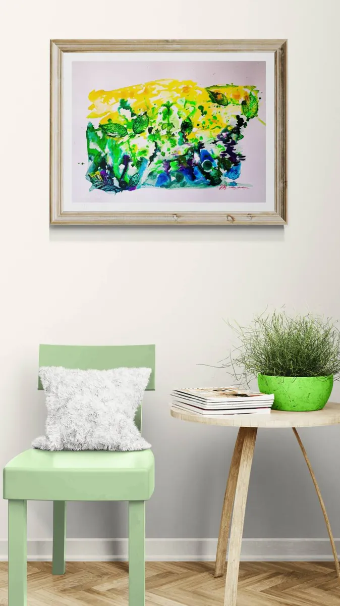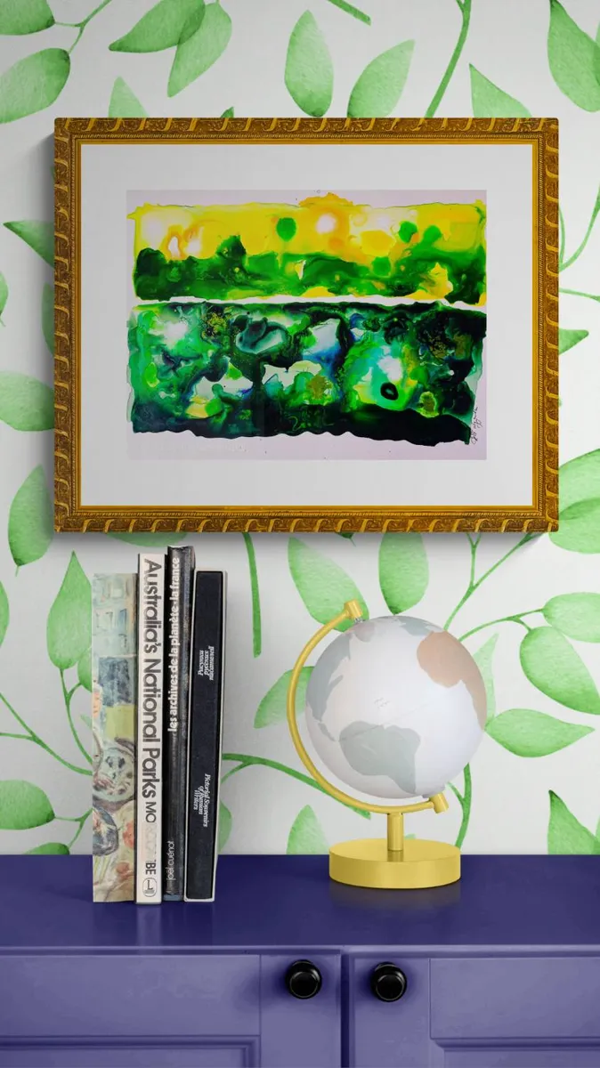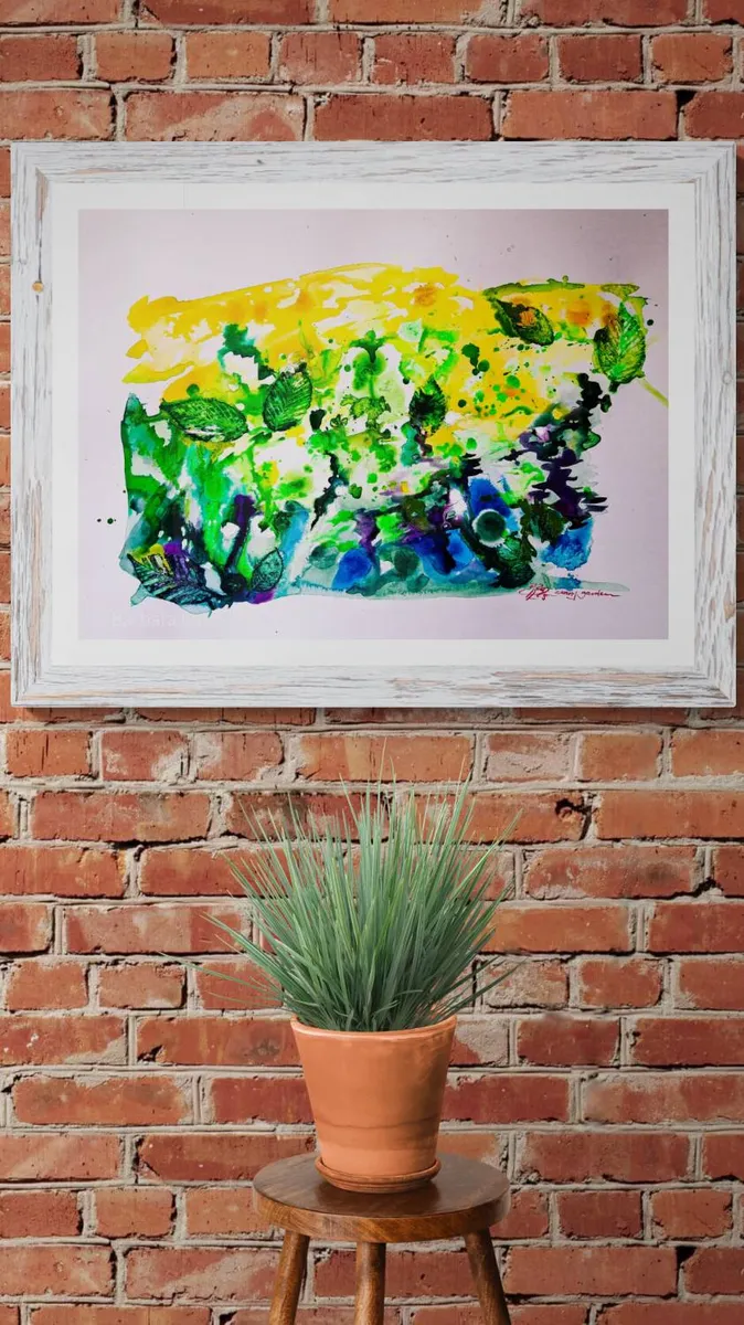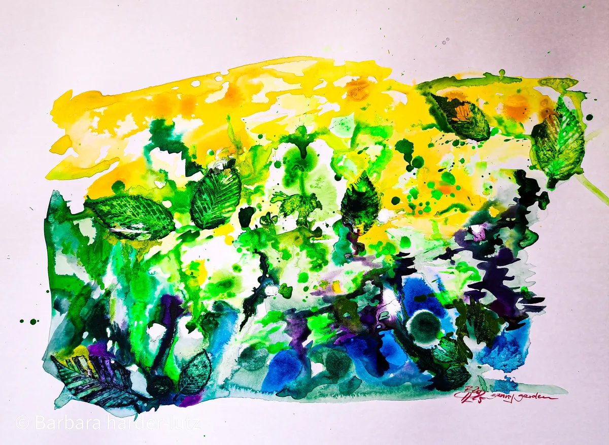 Acrylics inks, pearlescent inks & garden leaves on fin paper 300g - unframed - international shipping - copyright barbaraharderlutz