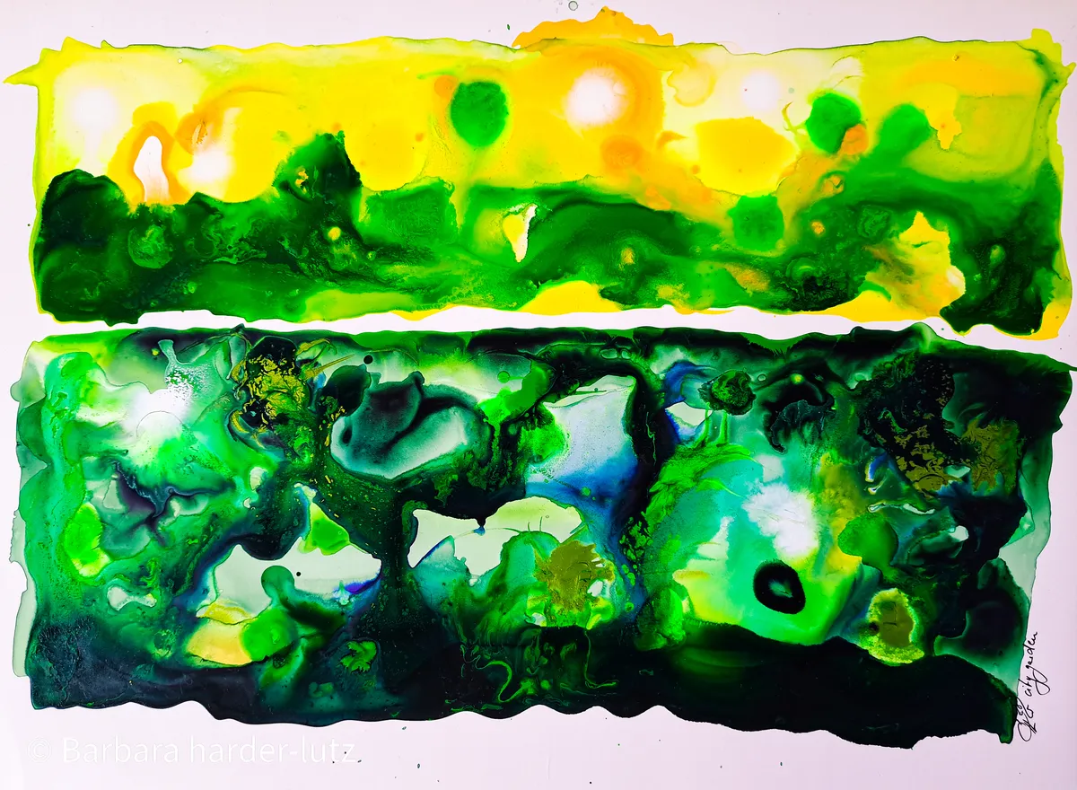 Acrylic inks & pearlescent inks on stone paper - unframed - international shipping - copyright barbaraharderlutz