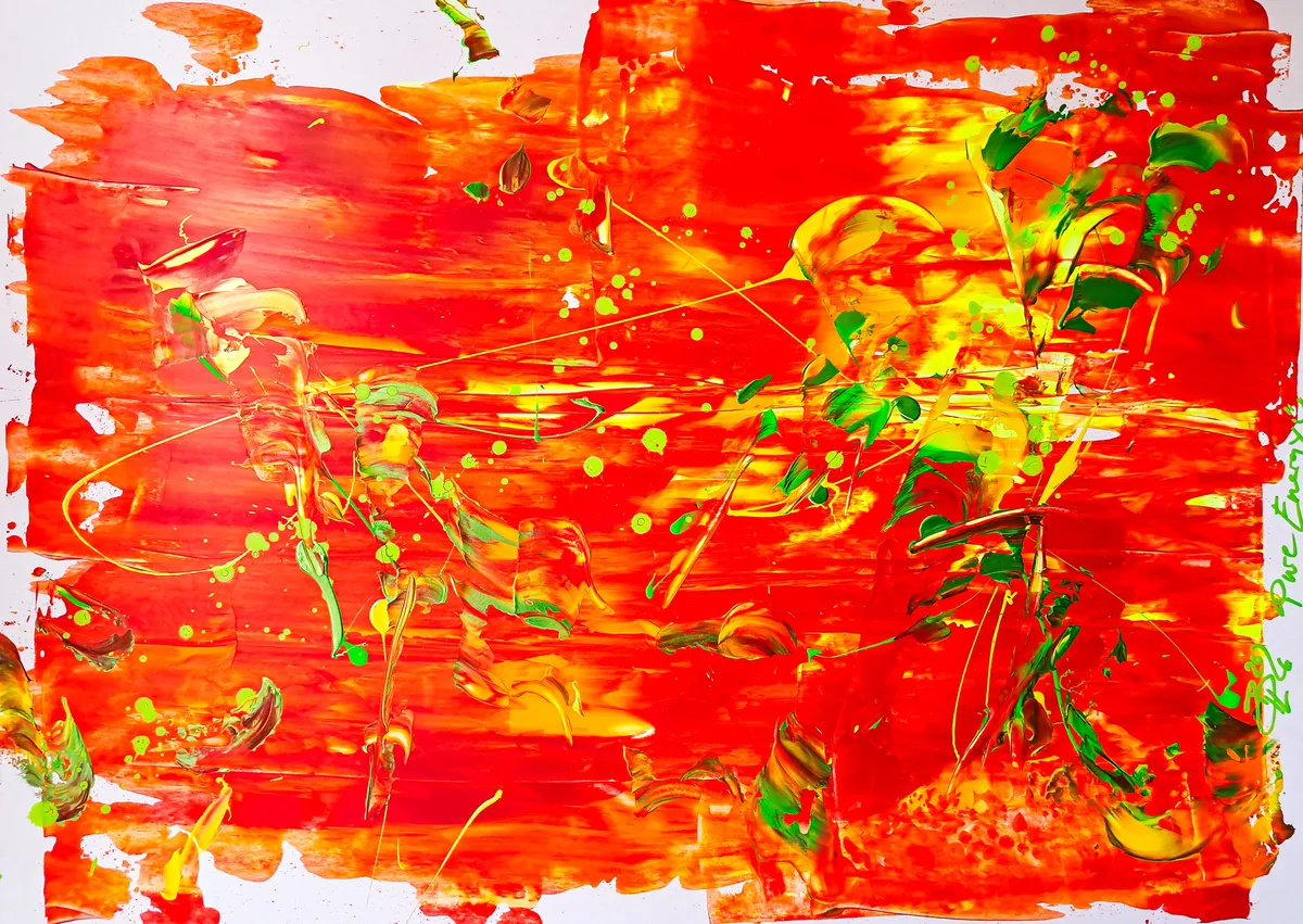 Acrylics & neon acrylics on heavy weight white art paper, 300g/sm The evening skies are spring messengers suffused with blazing colors again after a long cold winter.