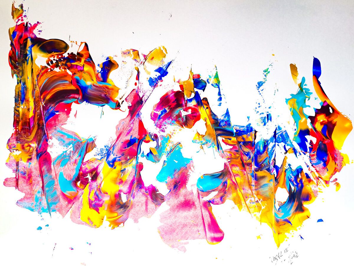 Vibrant colorful abstract art bursting with energy, optimism & personality.
