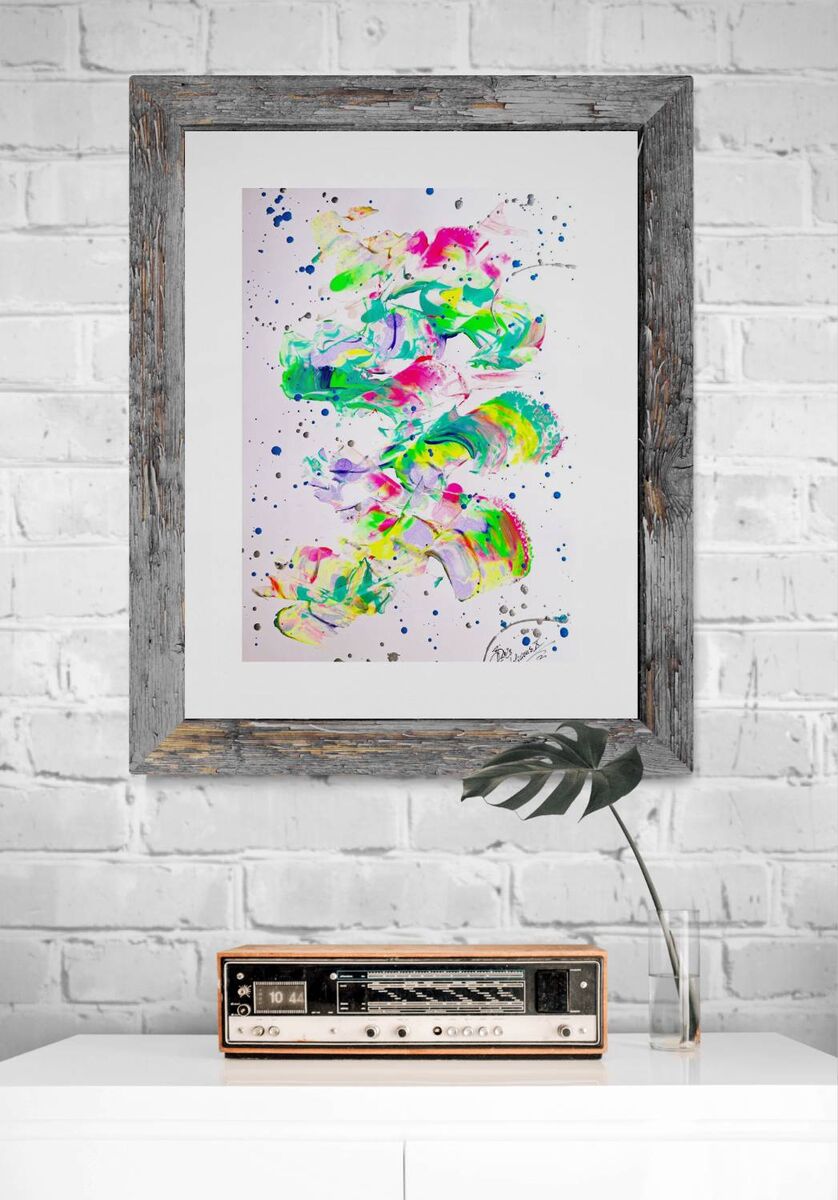 Acrylics & iridescent acrylics on doree paper- world wide shipping - artwork is not framed