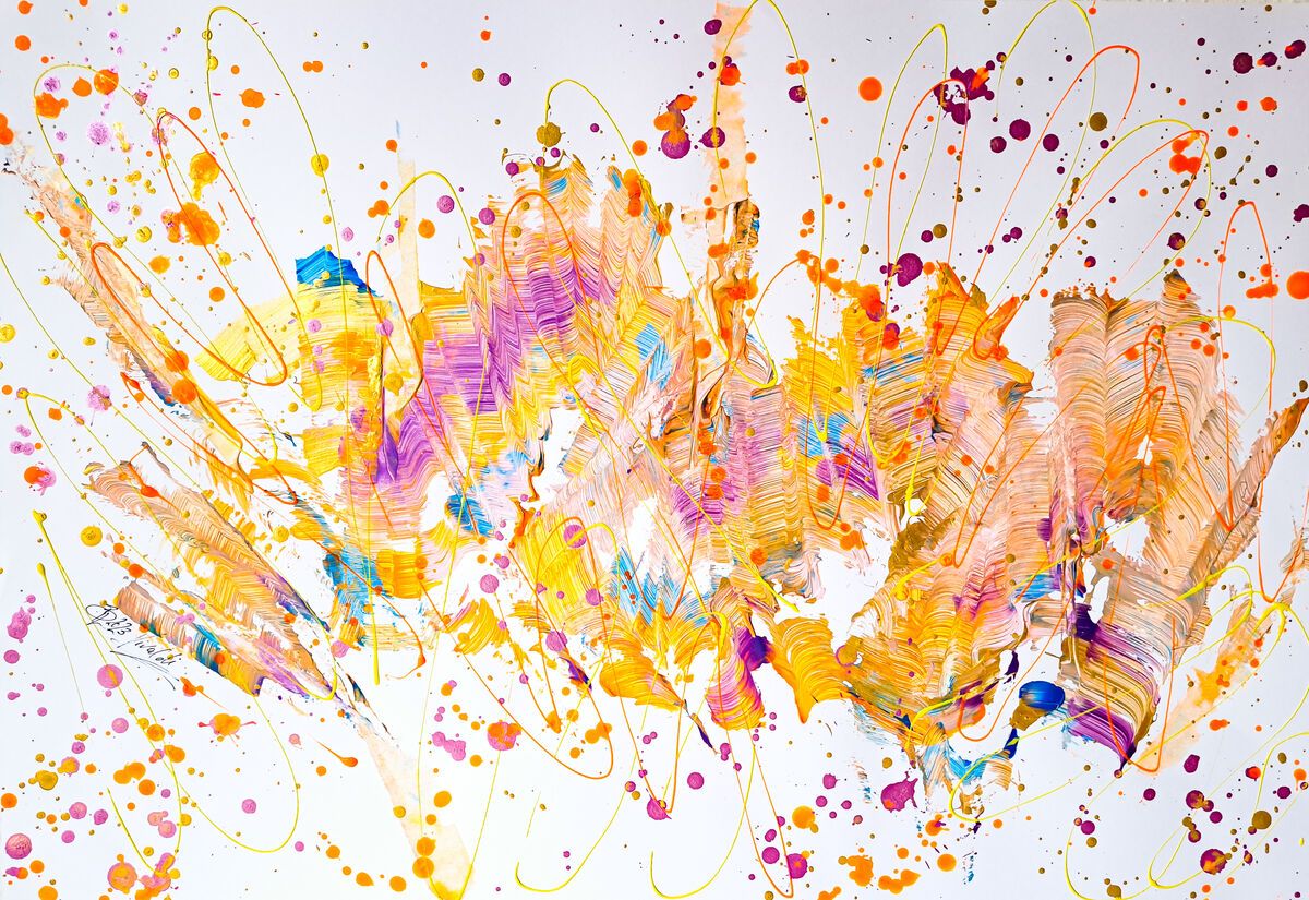 Acrylics & pearlescent acrylics on doree paper - unframed - international shipping available