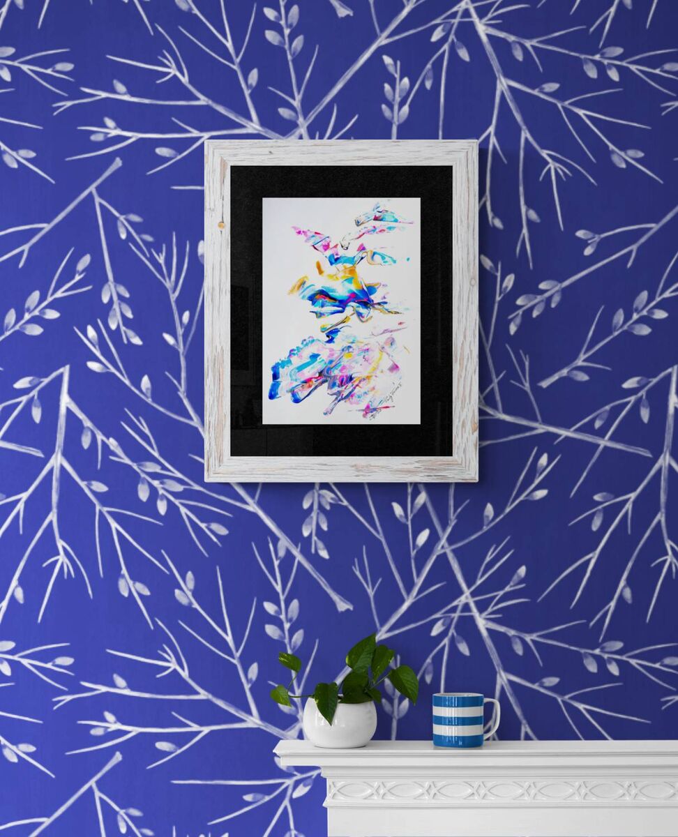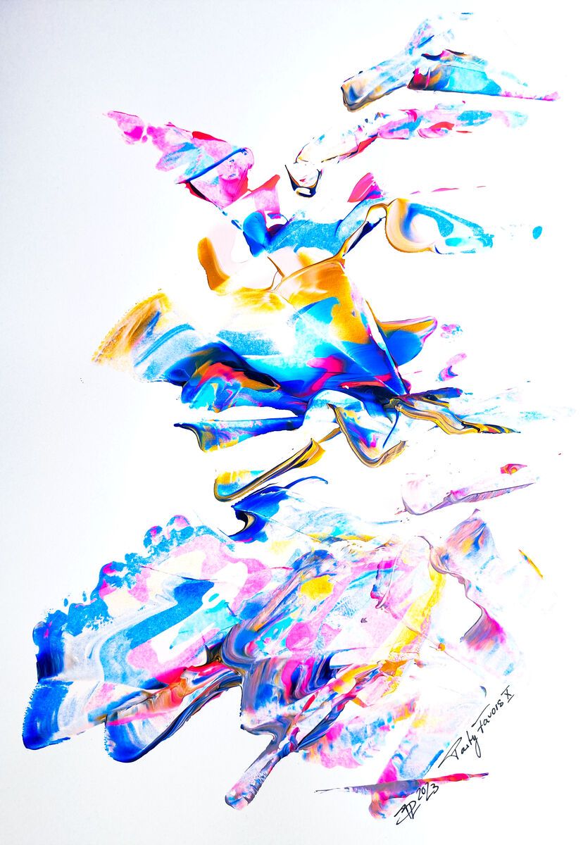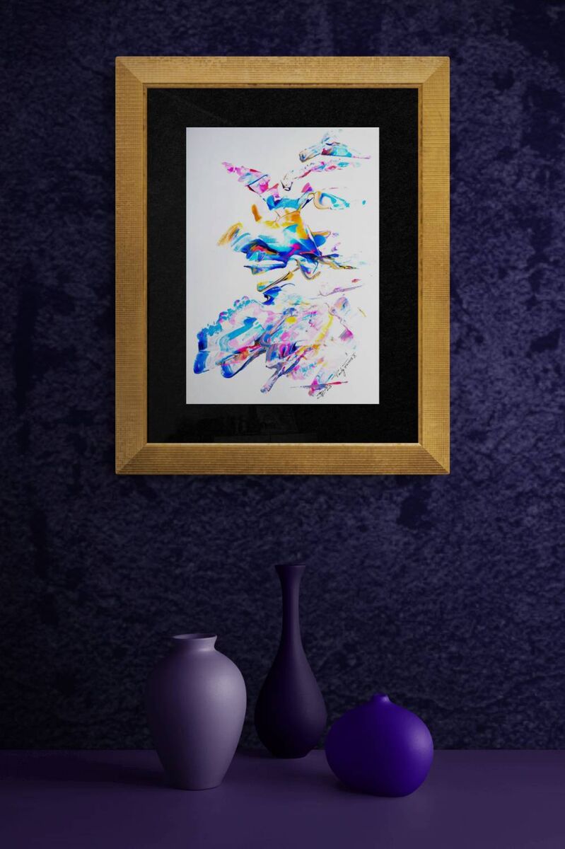 Iridescent acrylics on white doree paper - unframed - ships internationally