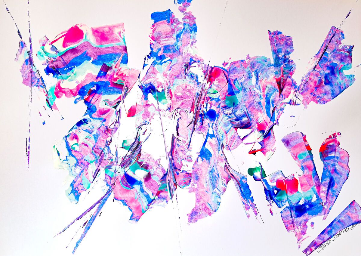 Iridescent acrylics on white doree paper - unframed - ships internationally